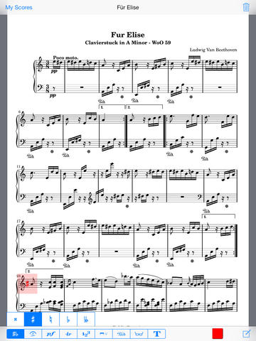 But that’s not all! The PDFs can be refined for study or practice purposes with the different annotation options of the reader. The users can take advantage of free text entry or pre-defined music symbols. The following symbols are available: accidentals, articulations, dynamics, trills, pedal signs and much more. A total of 60 music signs are available to users.